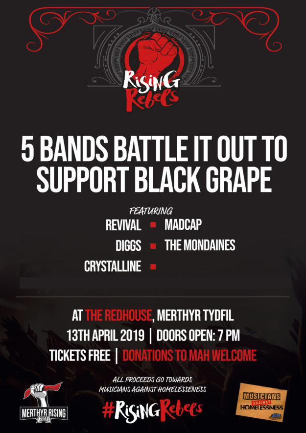 An awesome last minute confirmation! Free entry and all proceeds go to Musicians Against Homelessness. This Saturday 13th April in Merthyr, Wales. Grab your free limited-availability ticket here: https://www.facebook.com/events/567600633729101/